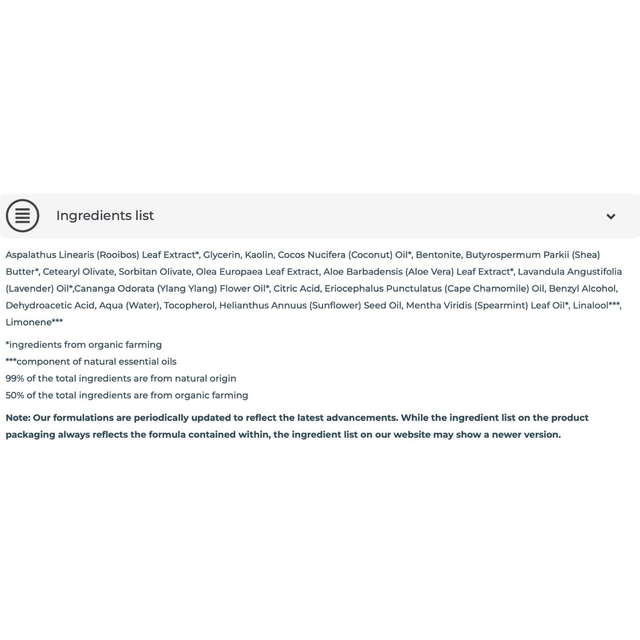 HAUPTWIRKSTOFFE: Bentonit, Kaolin, Olivenblatt- & Rooibosblattextrakt
