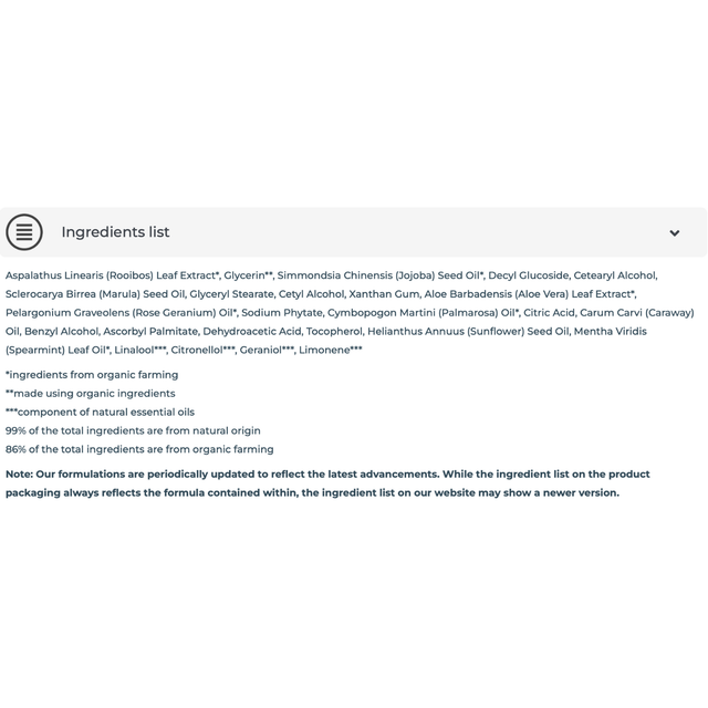 HAUPTINHALTSSTOFFE: Marulaöl, Jojobaöl, Rosengeranie