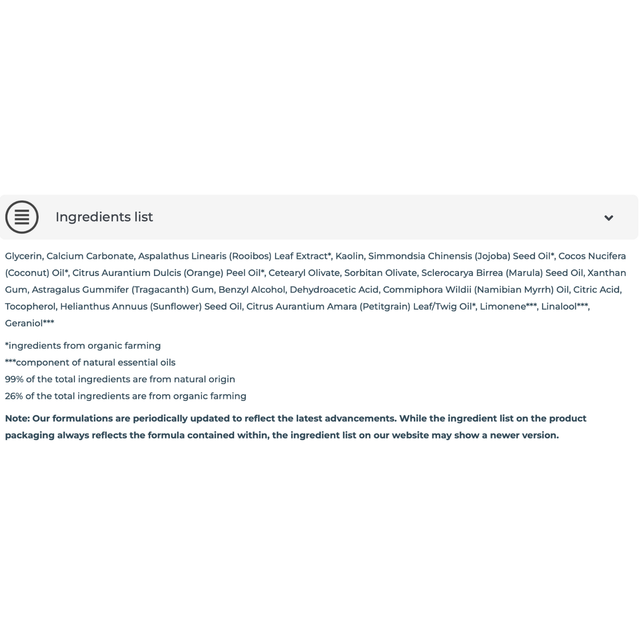 HAUPTWIRKSTOFFE: Kalziumkarbonat, Kaolin, Rooibosblattextrakt, Marulaöl