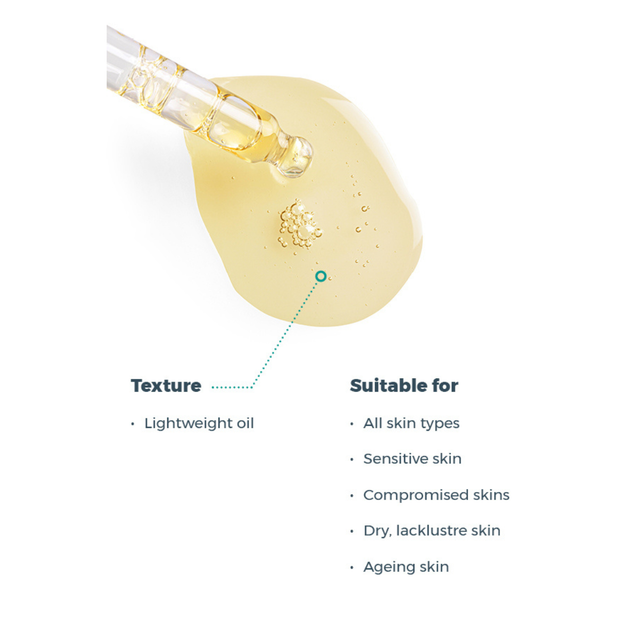 Es verbessert nachweislich die Hautfeuchtigkeit, Festigkeit und Elastizität. Dieses Öl verleiht der Haut eine samtig weiche Textur und sorgt dafür, dass sie sich straffer und widerstandsfähiger anfühlt.