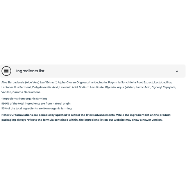 HAUPTWIRKSTOFFE: Prä- & Postbiotika, Aloe Vera und Milchsäure